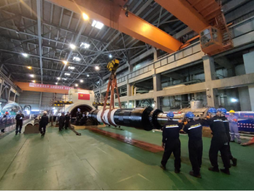 图为安徽铜陵公司工作人员正在进行发电机转子回穿作业