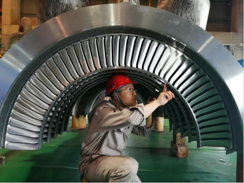 图为安徽铜陵公司汽机专业主管正在进行汽轮机高压缸持环检查
