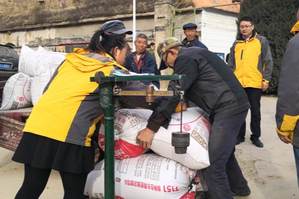 图为米脂县青创联盟电商公司上门到印斗镇对岔村收购谷子